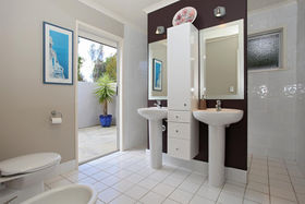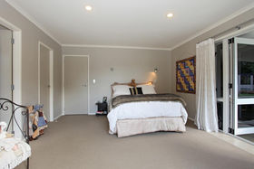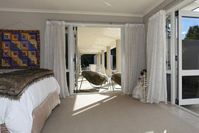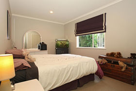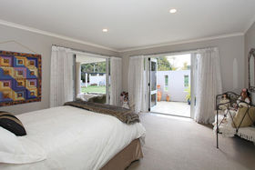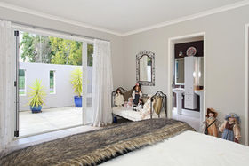 The master suite is sheltered and private with doors opening to the terrace and to its own walled courtyard; this would be the ideal spot for a spa pool in which to relax at the end of the day. The luxurious ensuite comes complete with double vanity and walk-in shower.