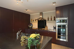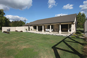 Outdoors significant landscaping continues the feeling of a relaxed and tranquil retreat; with a graceful pagoda and petanque court extending from the water feature. A well organised service area and raised veggie beds are tucked behind clipped hedges and vast flat lawns surrounding the home make the perfect spot for children's games.
