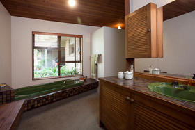 Multiple layered living areas provide plenty of room for the whole family to spread out; there is even a separate dining room complete with dual gas fireplace, where you can enjoy good company and delicious dinners. Your two family rooms are kept warm in the winter months with a wood burner and gas heater and in summer throw open the doors and windows to enjoy the cool breeze flowing throughout your home.
