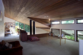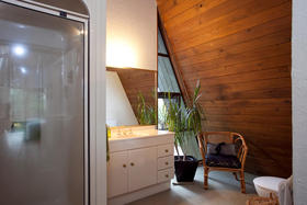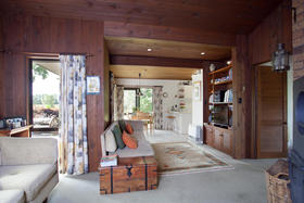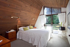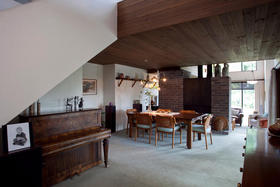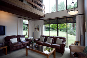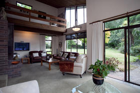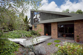 Architecturally designed in the 1980's, this home has a tasteful modern retro feel. From the varied high stud ceilings, warm dark pine, autumn toned brick and neutral palette throughout the home - not to mention the main bathroom which has a very chic tiled bath and vanity as well as an adjoining cedar-lined sauna, that entices you to 'relax and unwind.'