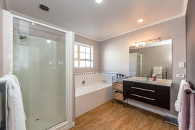 Inside the home is a real surprise - There are 2 light filled, spacious living rooms, both lead into the family dining room with dual access out to the private grounds and seating areas. The use of neutral tones throughout gives an awesome feel to the large home. The kitchen has great storage and bench space along with loads of light and warmth from the north facing windows. The second living room is open plan with French doors out to the courtyard, there is a feature wall which is elegant and adds to sophisticated finish of the home. The unique floor plan offers a bedroom wing consisting of 3 double bedrooms, the main has ensuite and walk-in wardrobe as well as French doors to the garden . At the opposite end of the house the is the 4th bedroom and the family bathroom with both a bath, separate shower and modern vanity. Internal access double garaging also plays its part in making this home perfect. Just in case you need more - there is a 5th double bedroom or office! For sure this must have ticked all of your boxes? If so phone Shaun. He is standing by to give you all the details you need and to book in a viewing.