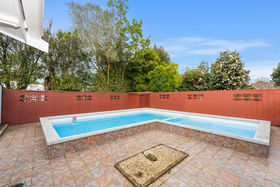 There is a living room, super large bedroom, toilet and shower. There are 2 sliders out to the pool area! And what a fantastic space this is! The large inground pool has a shallow end for the kids and enough space for all the family and friends to enjoy. It is well fenced and there is space for the bbq and outdoor seating, making it a hit come summer.