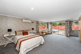 The main home is spacious and light. The kitchen has stained timber units, pleasant tiles and good cupboard and bench space. The lounge is open plan, drenched in natural light and has access out to the established grounds. The addition of the exposed beams and timber highlights set the scene of what could be. The 4 bedrooms are all double, the main having an ensuite and large walk-in wardrobe with built in shelving. The main bathroom has spa bath, there is a separate shower and toilet. There are multiple points of access out to the paved courtyard, to relax and take in the tidy grounds, trimmed hedges, shrubs and palms.
