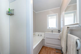 The updated bathroom comes with both a bath and separate shower.