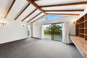 The living room has a mix of exposed timber beams, built in shelving, timber feature wall and raked ceilings which gives a feeling of light and space. As an added bonus there is a separate laundry and 2 toilets.