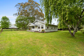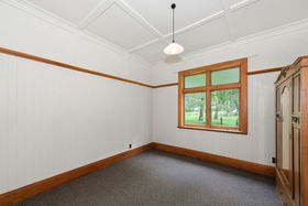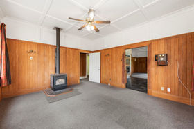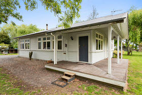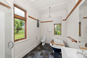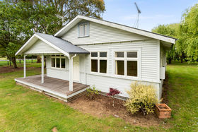 The kitchen enjoys open plan integration with dining and semi-separate lounge with log-burner while a small veranda placed for privacy with restful rural outlooks could easily be extended to expand outdoor living options. Rustic bathroom with pedestal basin, shower and original claw-foot tub services three generously proportioned, over-size double bedrooms.