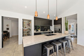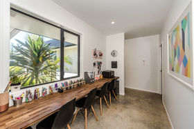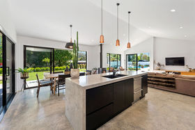 An entertainer's heaven where the chef can wow guests with a custom kitchen arrayed with a full complement of premium quality F&P appliances, dual sinks and soft-close cabinets assembled around a central Caesar-Stone island. Triple living areas offer opportunities for casual or formal hospitality leading to a covered loggia for refined yet relaxed outdoor living. A board-walk connects indoor/outdoor living to a spacious pool surrounded by expanses of paving for deck chairs and indolent sun-soaking.