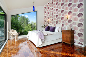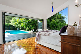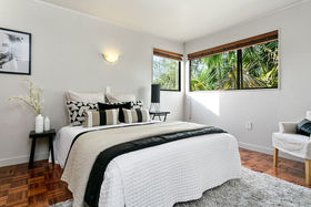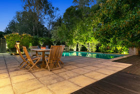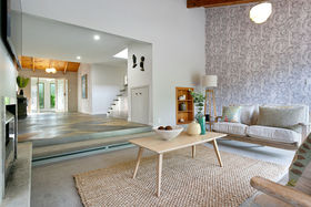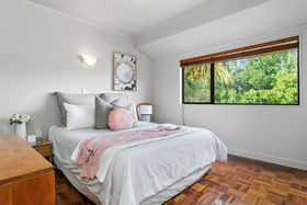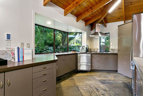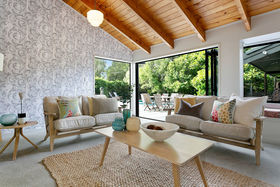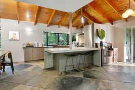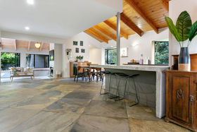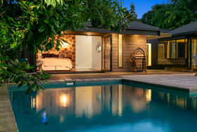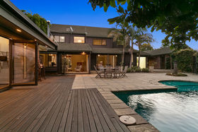 Rustic blends with robust in stylish shadow-cladding and brick construction casting an engaging frontal aspect giving way to palm trees, pool and tropical themed gardens around the back. The laid-back resort-like atmosphere extends indoors with sarked timber ceilings, parquet floors and expansive picture windows framing lush greenery while inundating interiors with sun.