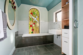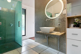 An immense sense of convenience pervades with two of the five bedrooms featuring private ensuites, bi-fold access to the deck off the master with an elegantly appointed main bathroom servicing family bedrooms. WIFI and office with built-in shelving support a home-business.