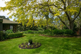The 4,531sqm section features a mix of level lawns, raised gardens and mature plantings with double-carport and garaging adjacent to the formal front entrance.