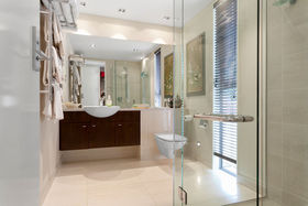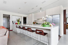 The main living area is anchored by an elegant and spacious kitchen featuring a 5m x 1100mm reconstituted granite benchtop with pop-up electronic connections. A double fridge/freezer, two dishwashers and beer and wine fridge, also help to make entertaining a breeze. Cupboard and storage space is amply catered for as well as a nearby larder which doubles as a laundry.