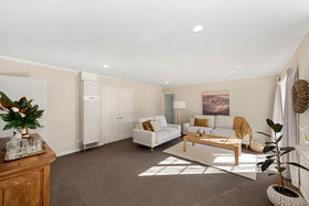 Inside the home is a real surprise - There are 2 light filled, spacious living rooms, both lead into the family dining room with dual access out to the private grounds and seating areas. The use of neutral tones throughout gives an awesome feel to the large home. The kitchen has great storage and bench space along with loads of light and warmth from the north facing windows. The second living room is open plan with French doors out to the courtyard, there is a feature wall which is elegant and adds to sophisticated finish of the home. The unique floor plan offers a bedroom wing consisting of 3 double bedrooms, the main has ensuite and walk-in wardrobe as well as French doors to the garden . At the opposite end of the house the is the 4th bedroom and the family bathroom with both a bath, separate shower and modern vanity. Internal access double garaging also plays its part in making this home perfect. Just in case you need more - there is a 5th double bedroom or office! For sure this must have ticked all of your boxes? If so phone Shaun. He is standing by to give you all the details you need and to book in a viewing.
