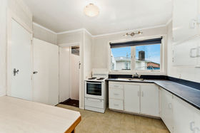 The open plan dining flows into the original kitchen with good bench space, storage and light.